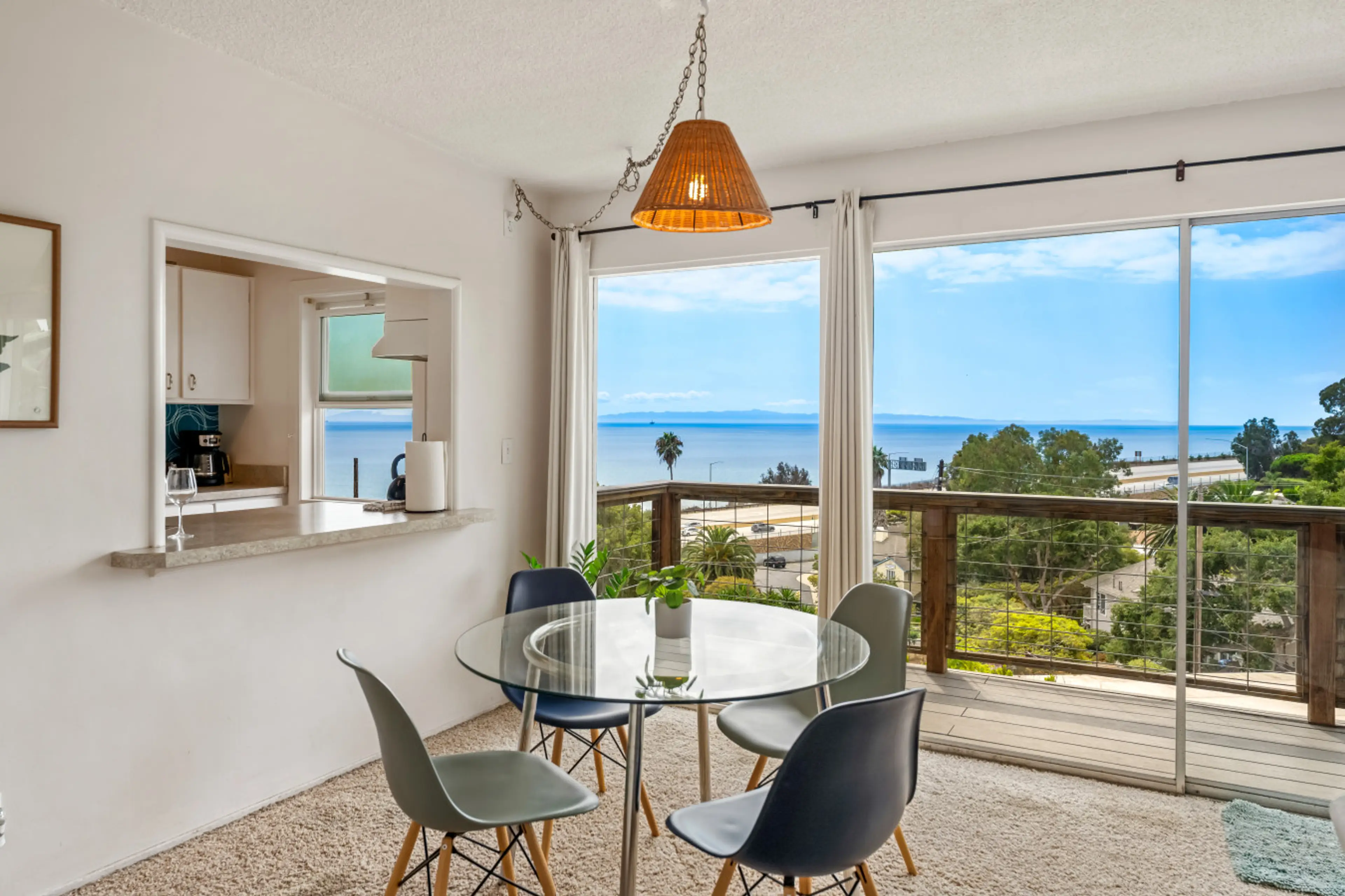 This is a very nice two bedroom property. Its safe, clean and comfortable. There is a lovely view of the ocean from the kitchen, dining & living room. Highway 101 is about 3 blocks away, so there is some noise when the windows are open, but its cool on the coast at night and the bedrooms are at the back of the property so we had no trouble sleeping. The kitchen is well stocked there were lots of pots and pans, a coffee maker, toaster, blender and a slow cooker. The beds were comfortable and there were lots of pillows. There was shampoo, conditioner and body wash in the bathroom and beach towels were provided also. There are no stairs going into this unit. You need to step over the bathtub to get into the shower, but their were grab bars. There seems to be another unit down stairs - down the hillside- but we never saw or heard anyone. The houses are somewhat close together, but the neighborhood was quiet the week we were there. Summerland is a small, cute, upscale town. We had a great brunch at the Beach Cafe down the road. Summerland Beach is quite rocky, go up or down the coast. We were quite comfortable here and would reccomend staying here.