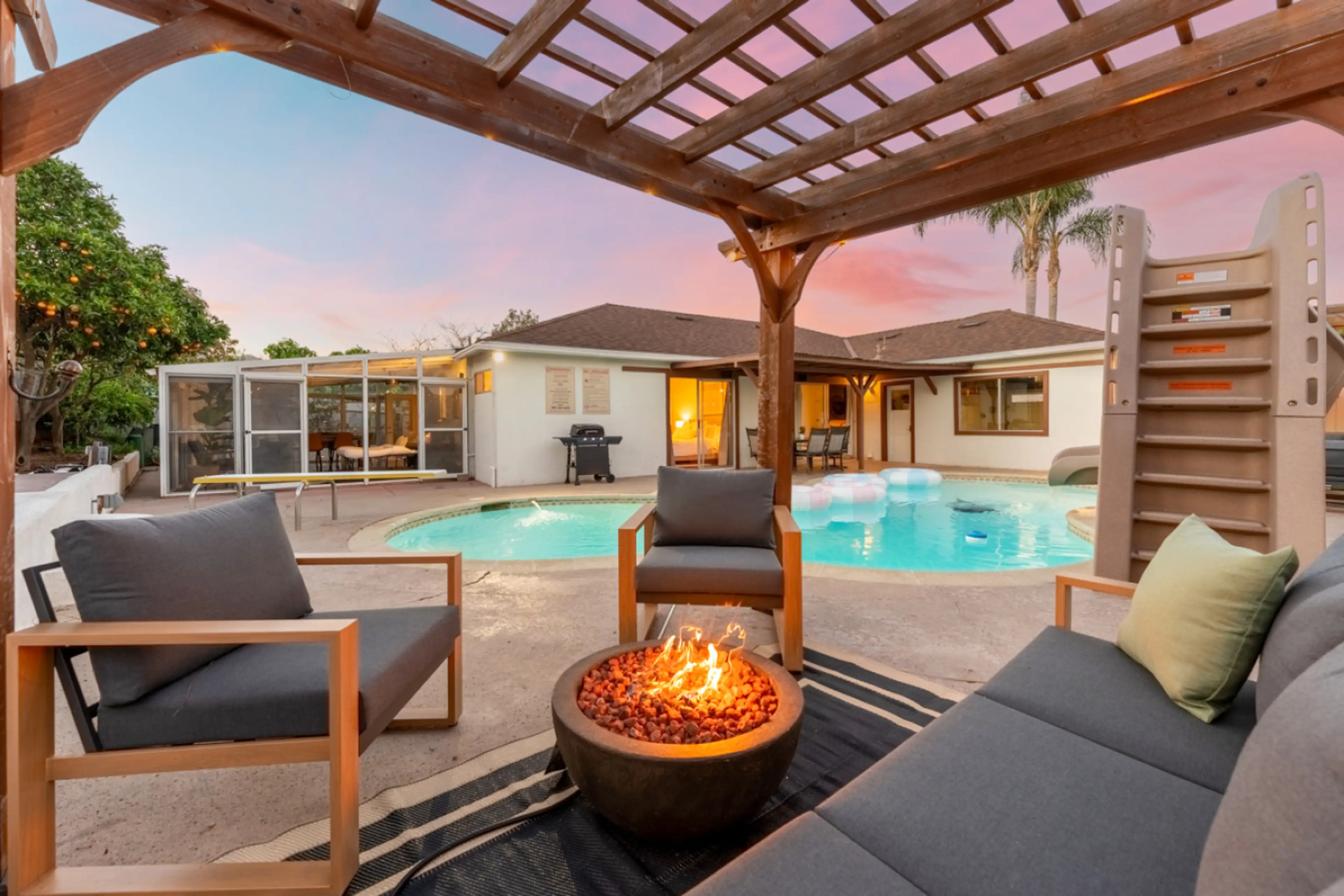 Welcome to The Grand Retreat Goleta — a newly furnished 4bd/2bth oasis designed for connection, relaxation, and play. Sleeps 10 with a sunroom queen sofa bed. Enjoy a spacious living & dining area, outdoor dining, two lounge spaces, and an outdoor ping pong retreat. The large resort-style pool with ...